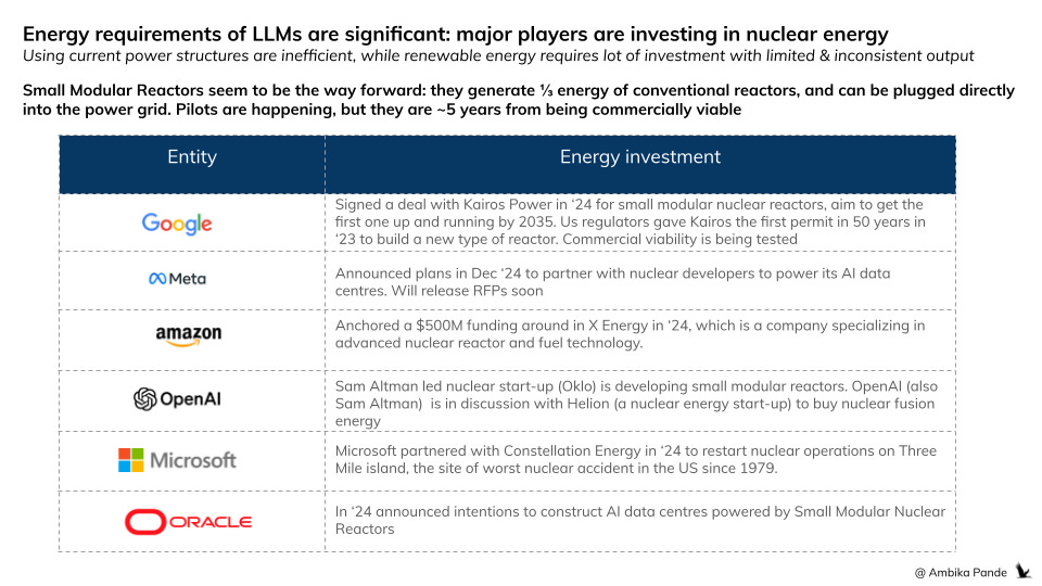 The opportunity in GenAI is immense. To deliver on the promise of this opportunity, tech will continue to push for more nuclear power, & more efficient infrastructure. Which will be driven through investments, working with regulators and influencing public opinion.
