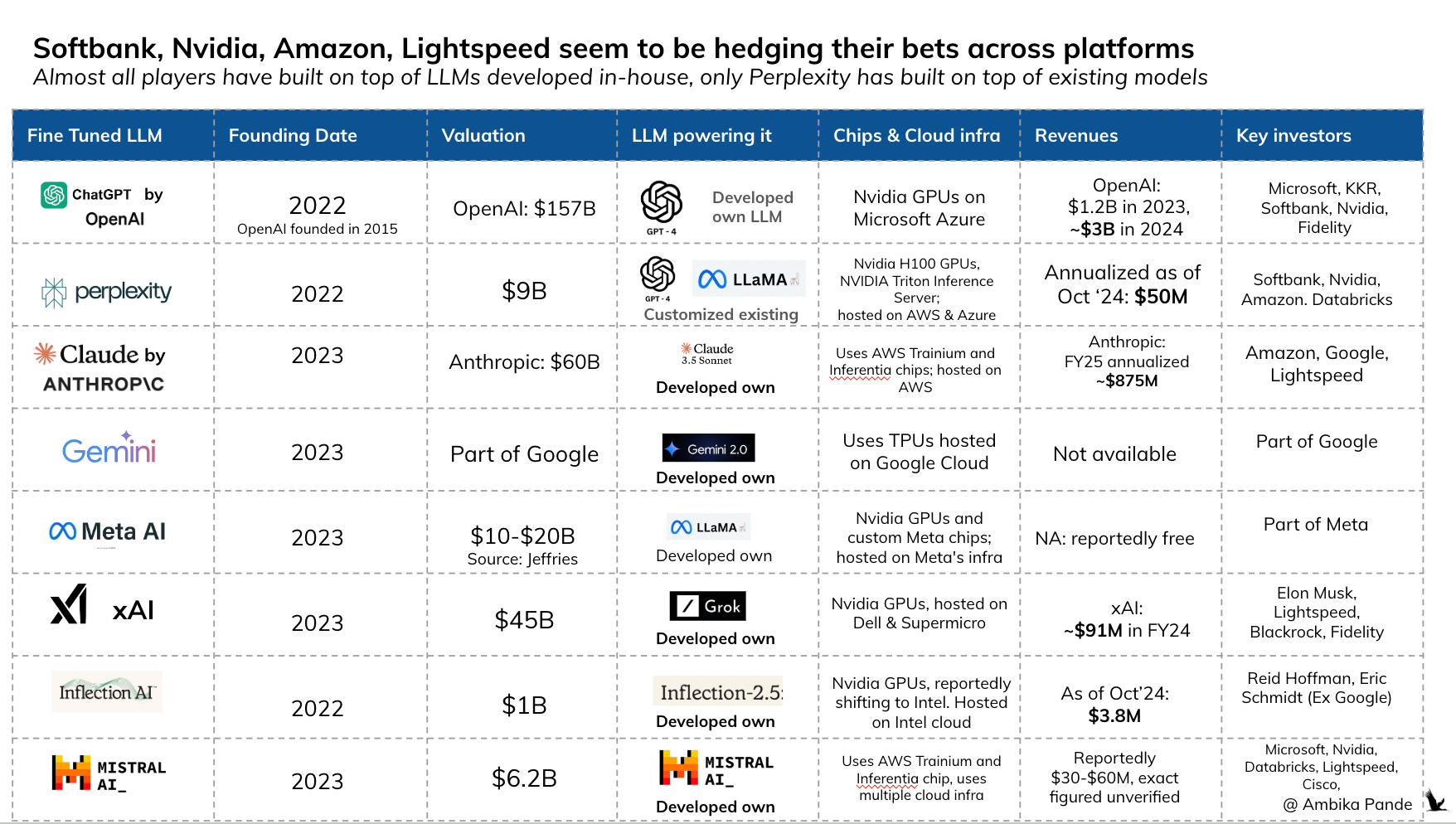 Softbank, Nvidia, Amazon, Microsoft & Google are all investing across LLMs.