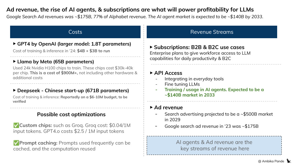 4) The big bet, for LLM chats at least (Perplexity, ChatGPT, Gemini, etc.) is Ad revenue: which is where the significant chunk of money seems to lie.