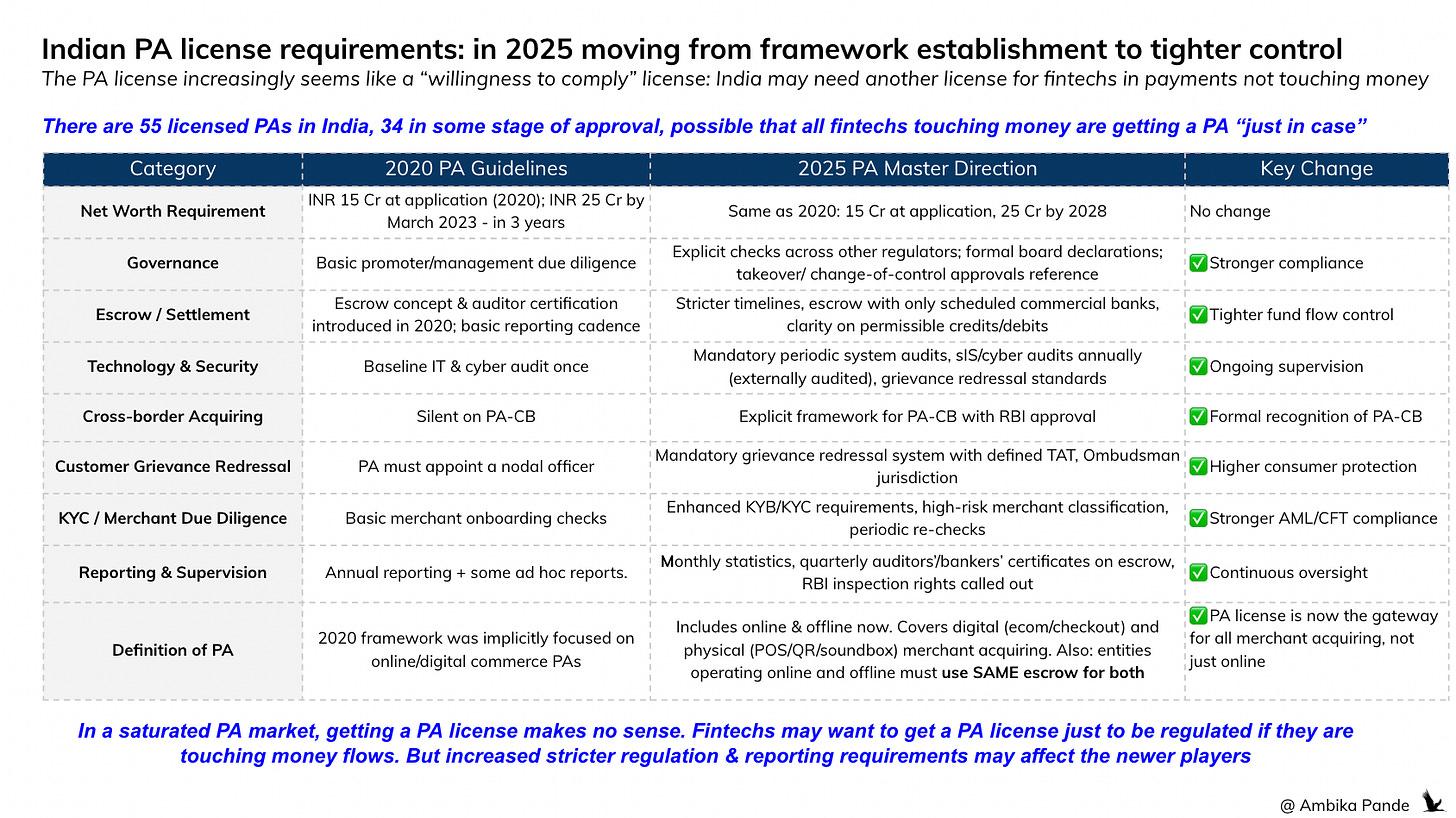 What is interesting is that RBI, through its 2025 guidelines has moved to a 1 license regime for payments, which is functionally segmented