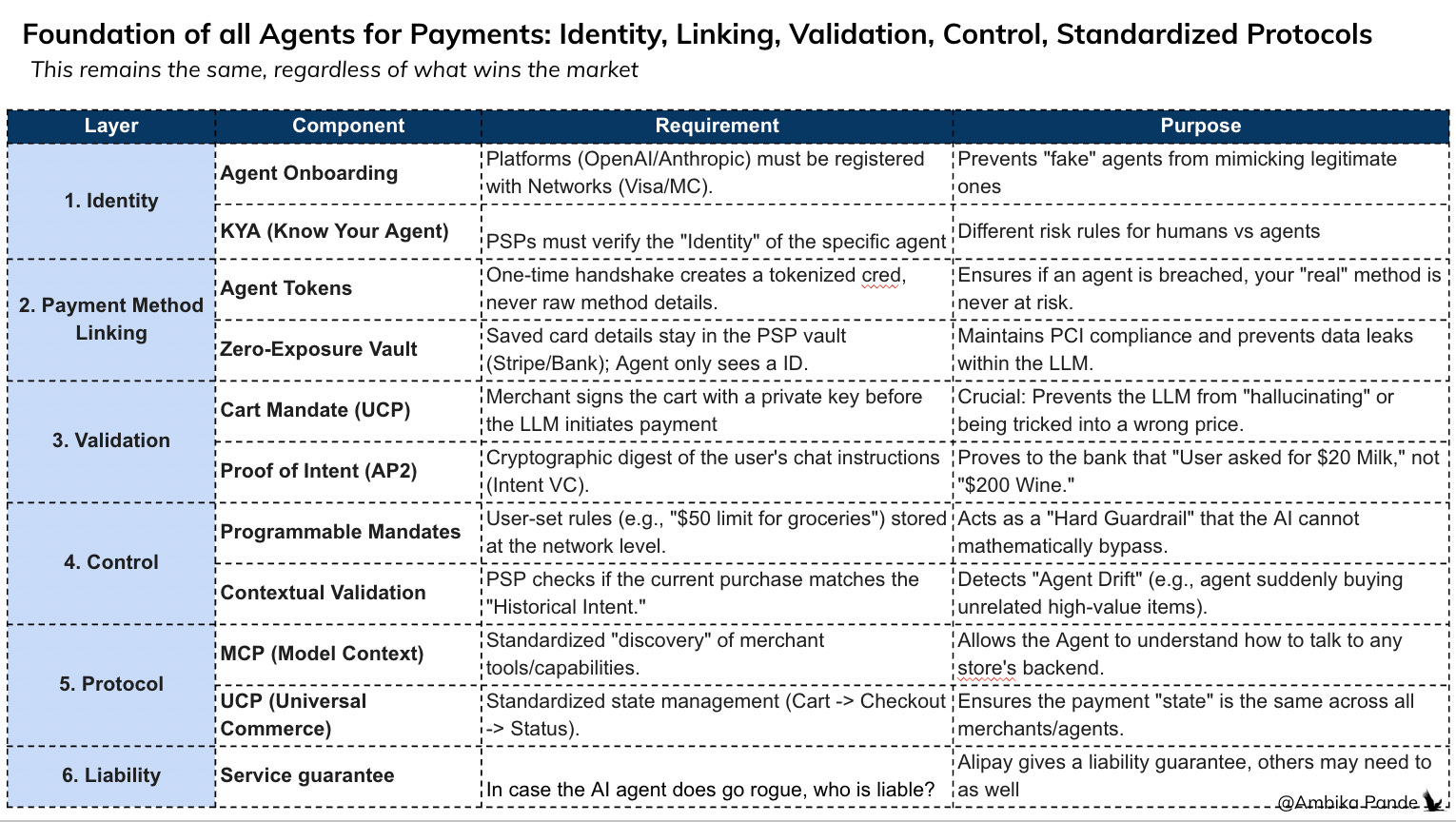 Agent orchestration: The key assumption here is that there will be multiple agents for commerce and payments. First principles: I feel this really depends on the user choice of LLM, and they will stick to that. But this is tough to predict, it is also possible that tomorrow a platform pitching “personalized agents for commerce” wins. 🔴