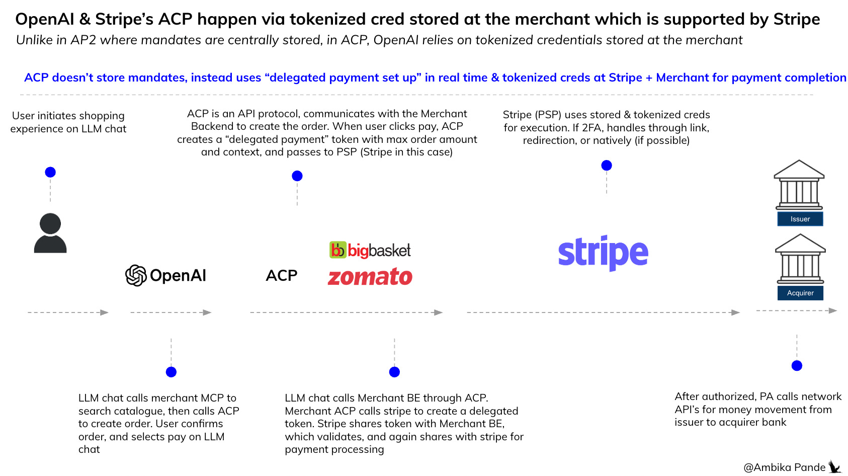 Stripe uses short lived context to ensure the AI doesn’t go rogue. This isn’t like an “agent” that is onboarded on VISA / MC previously, or some sort of mandate that is set up, like in the case of UPI Reserve Pay, or AP2