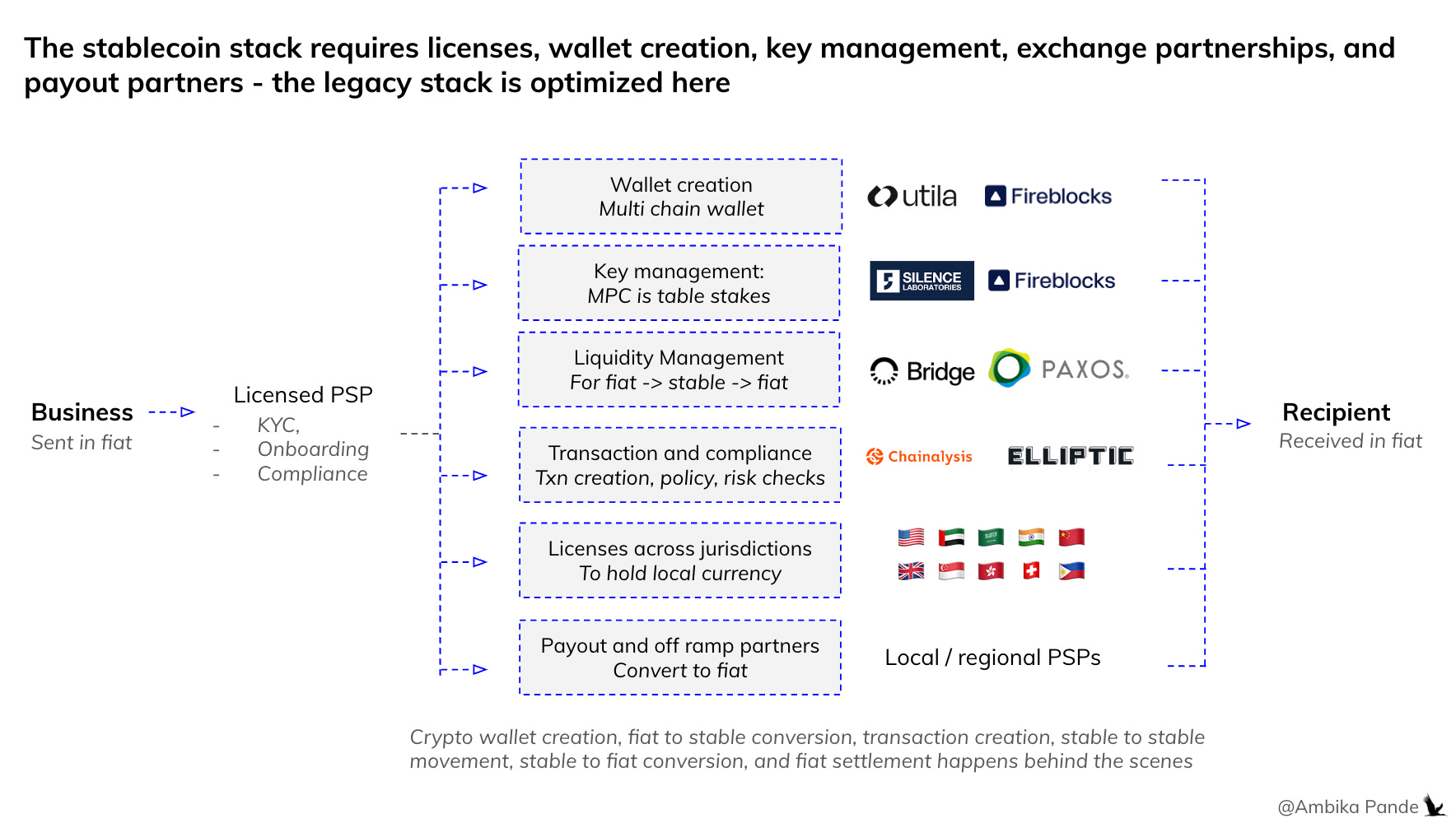 A traditional card payment touches 5+ intermediaries: issuing bank, card network (Visa/Mastercard), acquiring bank, payment processor, and sometimes a payment facilitator. Each adds fees, compliance requirements, and latency. Settlement takes 2-5 business days. Compare that to stablecoins. A stablecoin payment needs one signature from one agent. (which should be ideally a MPC based threshold signature to ensure maximum security). The transaction settles on-chain in seconds to minutes. No interchange network, no card association fees, no dispute arbitration layer. An AI agent with a wallet can autonomously pay another agent or APIwith no bank account, no KYC flow, no human in the loop. My core point here is that: Fiat payment rails were designed for humans transacting with merchants during business hours. Machines transact 24/7, at millisecond frequency, across borders. The legacy stack wasn’t built for this, and probably cannot support the volume of payments in any case