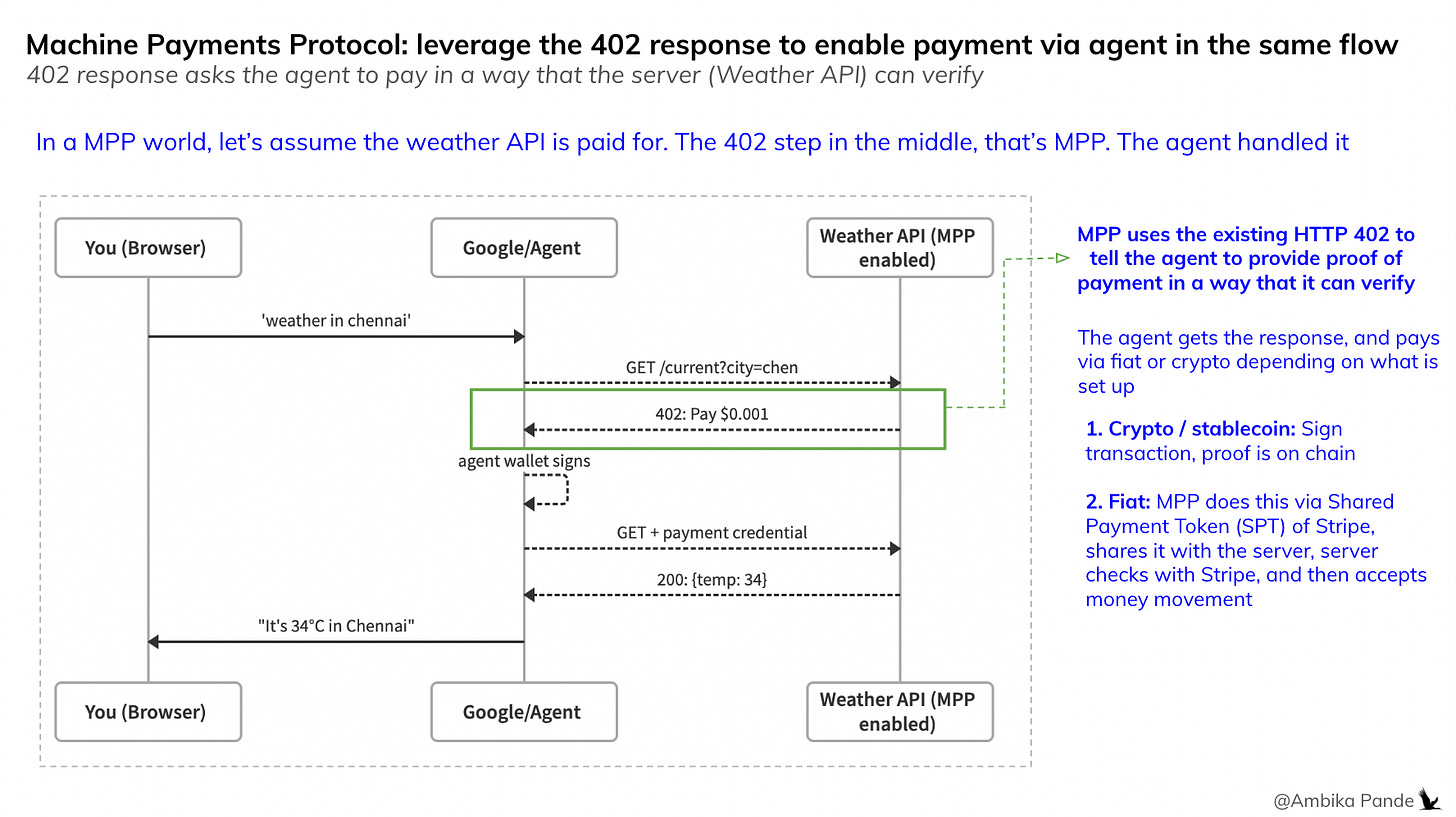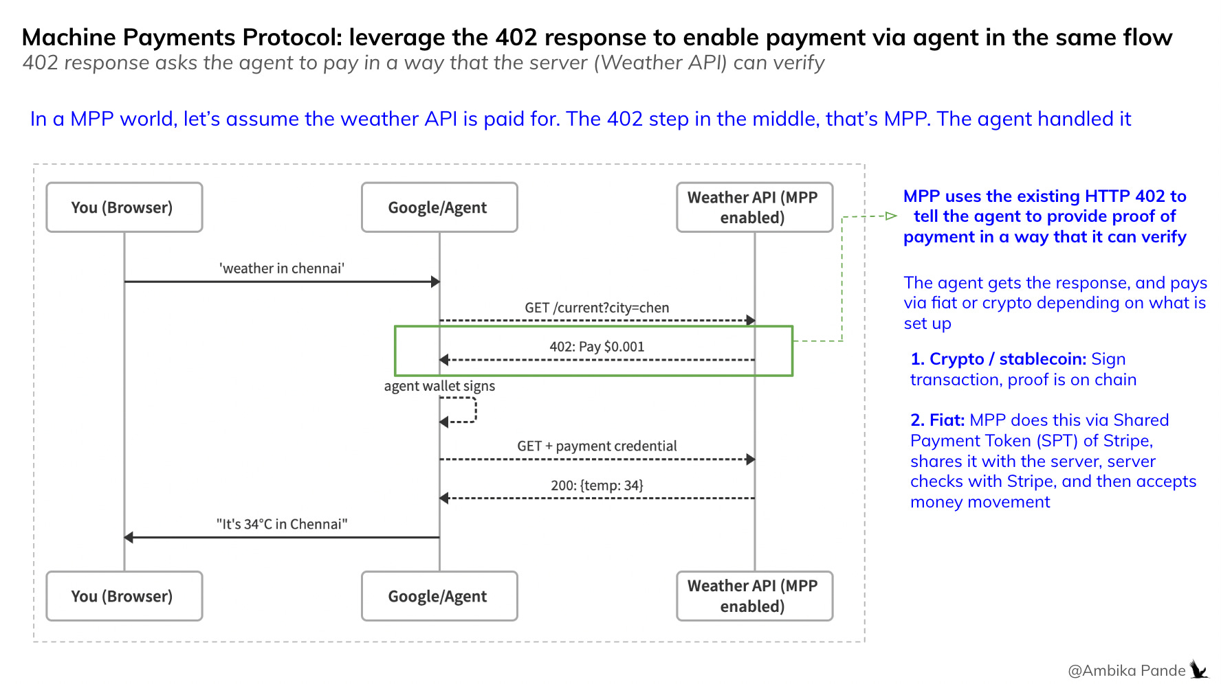 What is MPP? (Machine Payments Protocol?): Well, it uses the long unused HTTP 402 status code to enable agents to pay automatically for resources