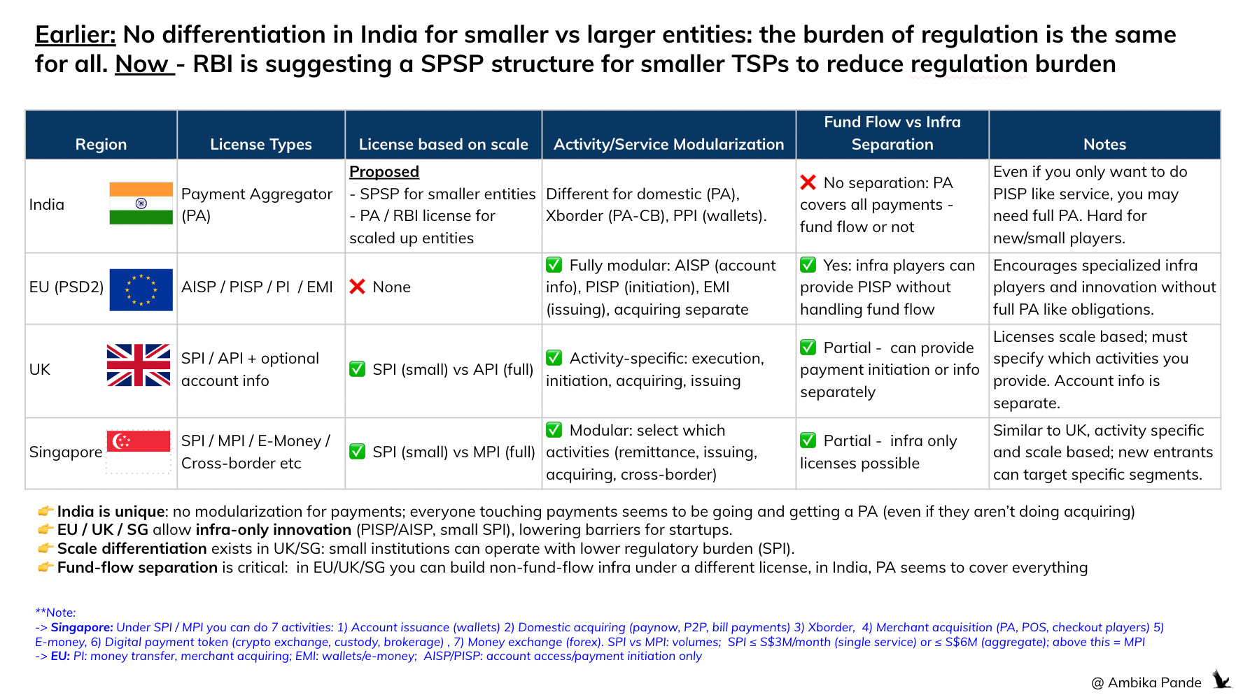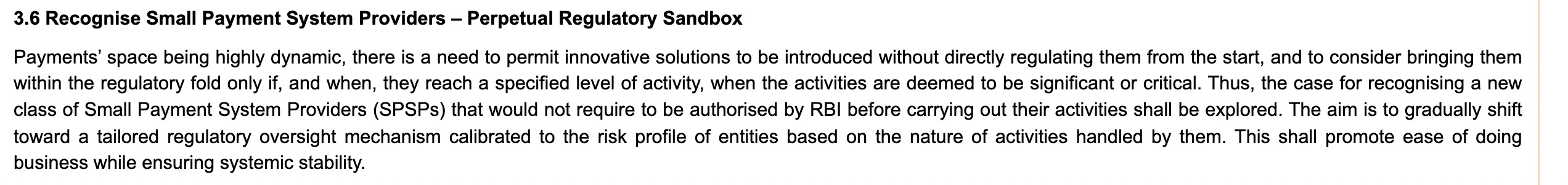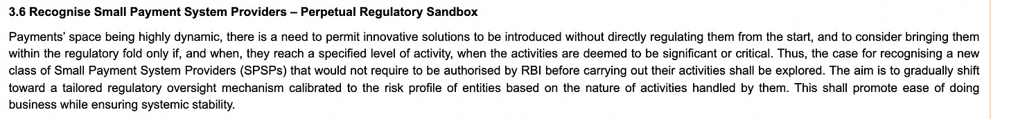 So, this is really good from the “regulatory” side of things. The regulatory declarations that a Pine Labs or a Razorpay which are processing hundreds of $billions are at a different scale. A small - just starting out fintech wanting to innovate on money movement should not have to adhere to the same regulatory requirements. They to do - which adds costs, overhead, and makes it hard to operate. And this is in line with what UK and Singapore have currently, so there are precedents for this.