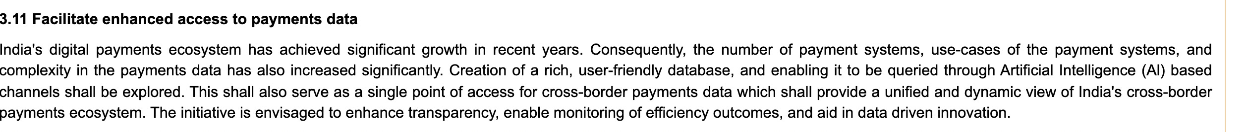 Other things that RBI covered under cross border are: 1) Dedicated reporting, which is tracking domestic trends and global developments separately and 2) G20 alignment, where efficiency metrics benchmarked to global standards. Now, the jury is still out on what this means since these 2 points mean that we’ll benchmark our products to global standards.