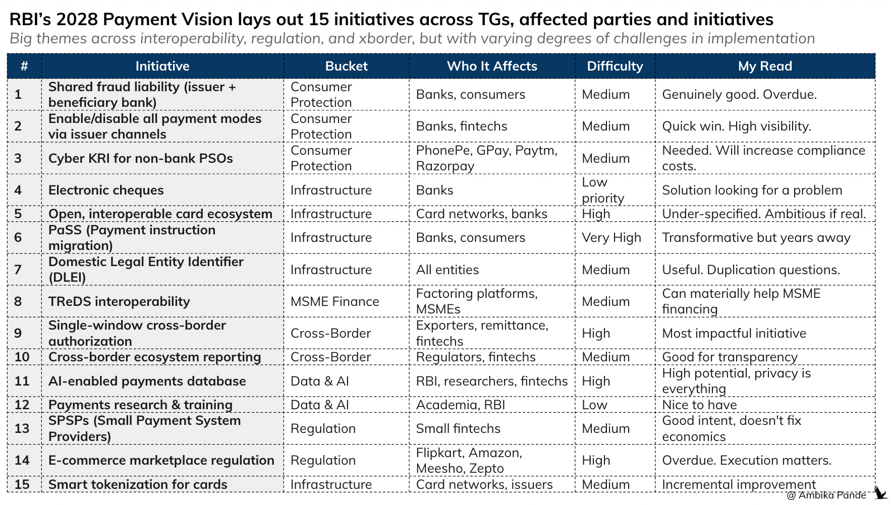 👉 My concerns: I’ve argued in the past that standalone TSPs are being squeezed out of the market - the Signzy-PowerEdge acquisition was Exhibit A. Others: Razorpay buying a stake in Pop, PayU acquiring Mindgate (UPI switch) are all symptons of this. Even profitable, funded startups are getting absorbed because the economics of operating independently in India’s fintech market are brutal. SPSPs are RBI’s answer to the entry problem. And the fact that they have addressed this entry problem means that somewhere, someone has recognized that it is tough to operate as a small fintech player in India. But the entry barrier was never the JUST the license, it was the economics. Giving someone a license to enter a market with zero margins is still a market with zero margins. And that is something that is glaringly absent from the 2028 payments vision.