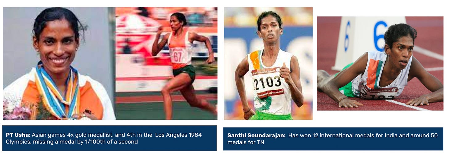 The stories cultivated by the media play such a huge role in shaping public opinion. There is a need for a better versed media, which does not just write “Why is India not winning Medals” themed articles, but instead presents a view which shows the progress that we have made over the years, in terms of running times, medals won etc. For example: If I start running tomorrow, I don’t expect to win a National title in 2 years. Same logic applies here. And similarly, we need the athletic departments to recognize the time, the effort, and the enablement required to win. The officials can’t be looking just to make a “quick buck” but have to passionately advocate for the athletes, both in India, and in international events. We also need articles written with a pro-athlete sentiment, and not written as clickbait, or to garner eyeballs, but responsible journalism. There’s a story in the book that made me really angry - the case of Santhi Soundarajan. She is a track and field athlete and has won ~12 international medals for India and ~50 medals for her state. This includes a silver at the 2006 Asian Games. After she won the Silver medal, she was called to a room where a “sex test” was administered. The Indian official, after escorting her to the room exited, and left Santhi, who only spoke Tamil, to suffer this indignity, with no idea of what was going on, no support. She failed the sex test, and was sent back to her village in humiliation. And then years later, when a male colleague would accuse her of choosing to be a sports trainer as a way of preying on younger children, the media gleefully printed this out in papers, with no verification of what actually happened, condemning her to a new wave of humiliation. Why did the Indian officials not fight harder to protect Santhi? And more importantly, why did the media not verify what they were printing?