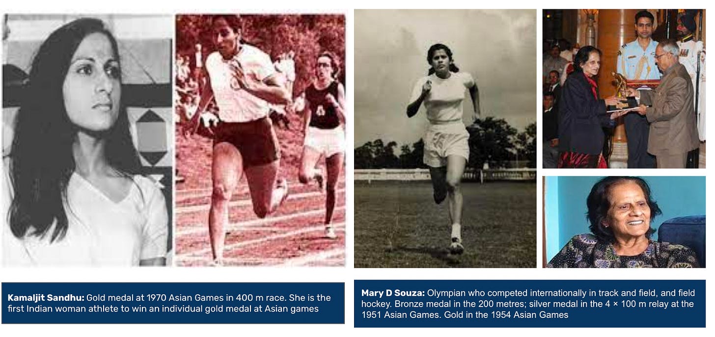 In the 1980’s, we were in the participation phase for women’s sports - global contests where women were sent as an afterthought, and the expectation was usually for the men’s hockey team to medal, if not win a gold. But this participation phase was important also, as it put in place building blocks for women’s sports to grow. Mary D Souza , an Indian Olympian who competed internationally in track and field and field hocket, and won medals in the 1952 Asian Games, talks about how the exposure she got, even by being sent to the Olympics as an afterthought, was so important, as it made her realize what it actually took to win. She saw the difference in the world champion and in her - the training, equipment, and the focus required to win, and took that back with her when she went back to India, and later took on the role of a PE teacher. There is a line that she’s articulated beautifully - The Olympics is not just about winning - if it was, then only 4 countries would participate. It’s also to see what excellence is, and measure yourself accordingly. And I hope that in the 2024 Olympics (starting July), while we go for medals, we understand that it’s not just about winning, but getting closer to excellence. A lot of times, when we don’t medal in the Olympics, we are very quick to write articles about the “failure” and why the USA / China contingents are winning. I think we have enough exposure to know why. For a lot of these athletes, they are realistic, and they know what is achievable and what isn’t. And a lot of them actually end up having their personal bests at events like this, showing how hard they’re pushing themselves. And that’s the eventual goal isn’t it? To constantly improve and get better?