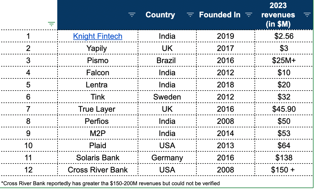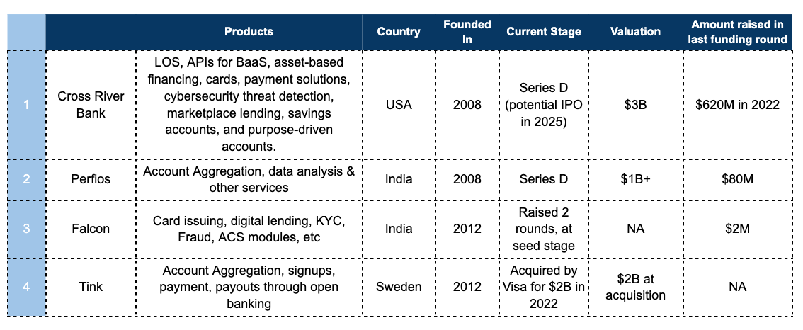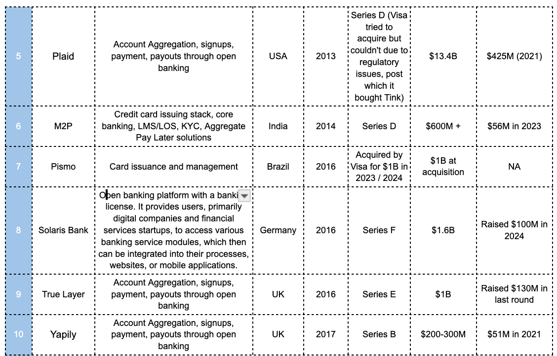 3. In India atleast, open banking still has to scale: Most of the fintechs focused on banking operations seem to be building more for bank systems such as Lentra (LOS, LMS, and other modules), Hyperface (Cards), Falcon & Knight (cards, treasury management, co-lending etc).