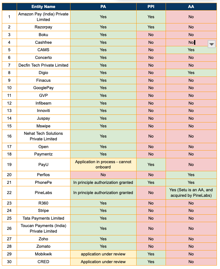So while it’s still early days for the newly licensed PAs, old hands such as PayU, PhonePe, Razorpay, and PineLabs seem to have a strategy in play, and it won’t be surprising if we see any one them apply for / get an AA or other licenses to enhance their offerings. Of course, a lot also depends on where they are incorporated - Razorpay is currently domiciled in Singapore, and is moving its domicile to India. PhonePe completed its reverse flip in 2022, and got its AA license in 2023, so thats’ probably a requirement to get an AA license in India