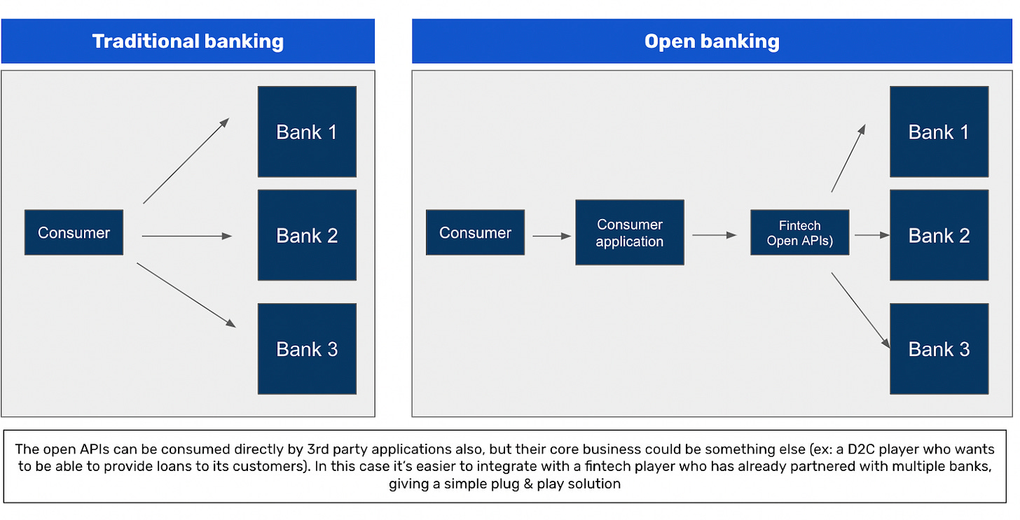 And I call this “building for banks” because it can enable them to reach more customers, and provide a better experience for its existing ones. In fact, even neobanks (Jupiter, Open, Fi) in India are technically open banking players, since they do not have banking licenses of their own but partner with banks at the backend to acquire & onboard customers, and then cross-sell financial products to them. But a key point here is not every 3rd party can access this information from banks (and rightly so). For this, you have to be a licensed account aggregator (AA).