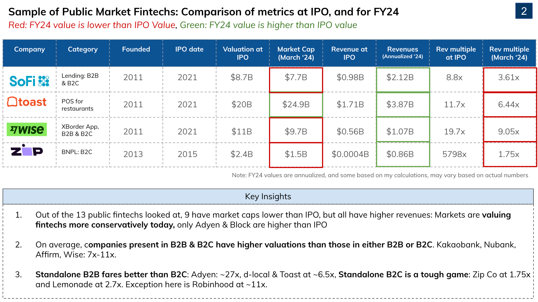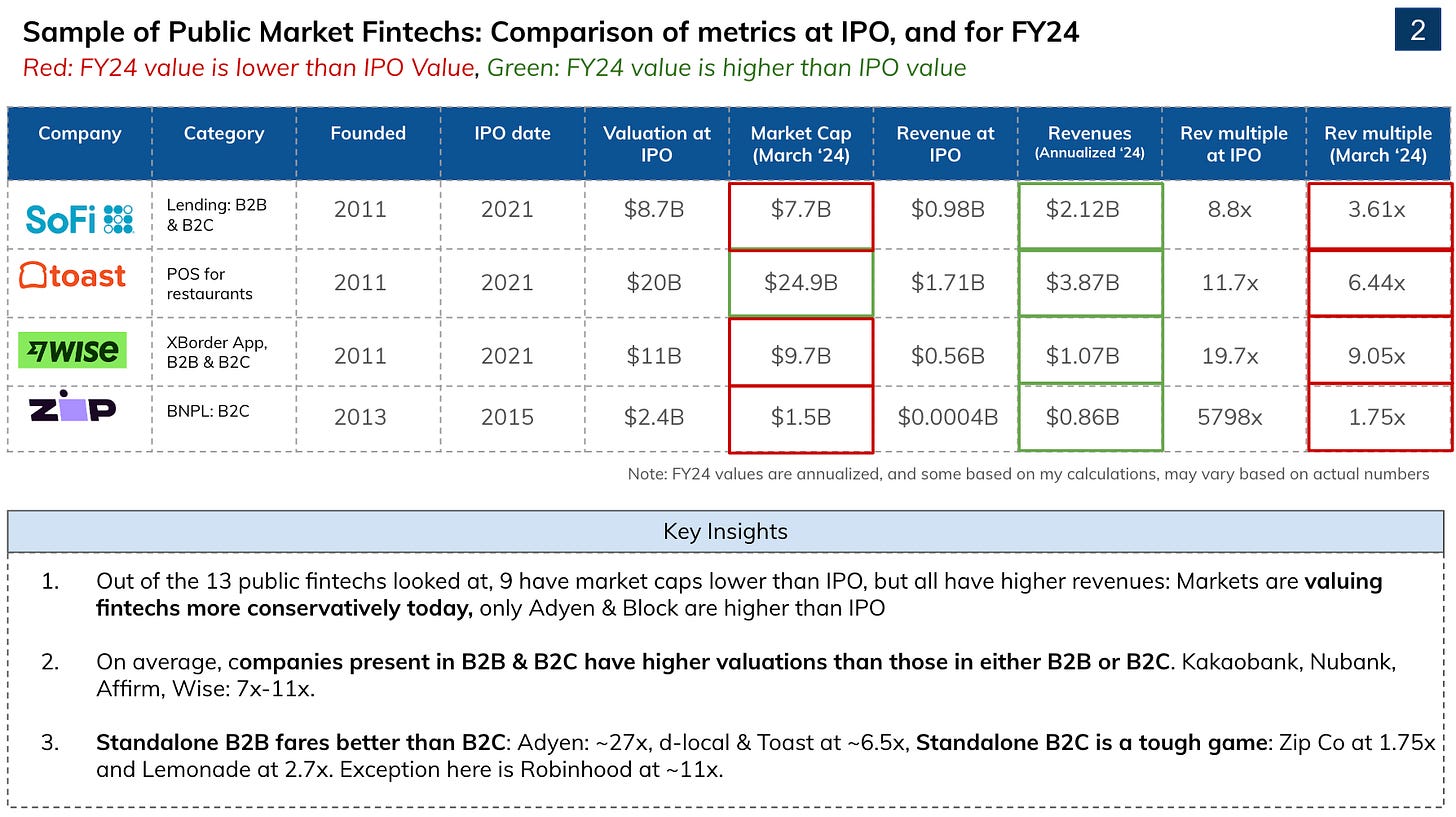 2. Fintechs are being valued at more modest revenue multiples now, as compared to 4-5 years ago