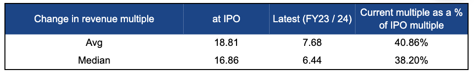 I have evaluated this based on the valuation of the company as it went to IPO, and its revenues at that point, vs what its valuations are as of 2023 / 2024, and their revenues. Here are the stats: