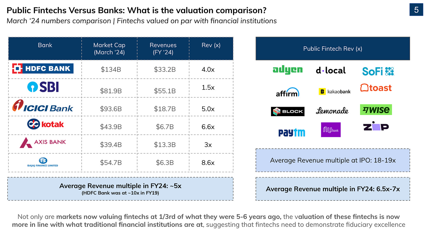 The public market seems to value fintechs at similar revenue multiples such as legacy financial institutions such as banks & NBFCs.