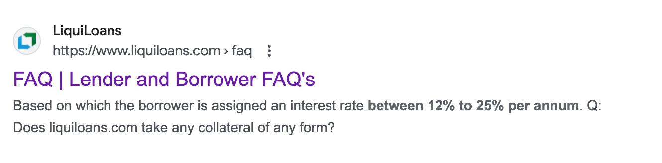 Now, take the interest rates charged by P2P NBFCs to the end cutsomer (From the Liquiloans FAQ)