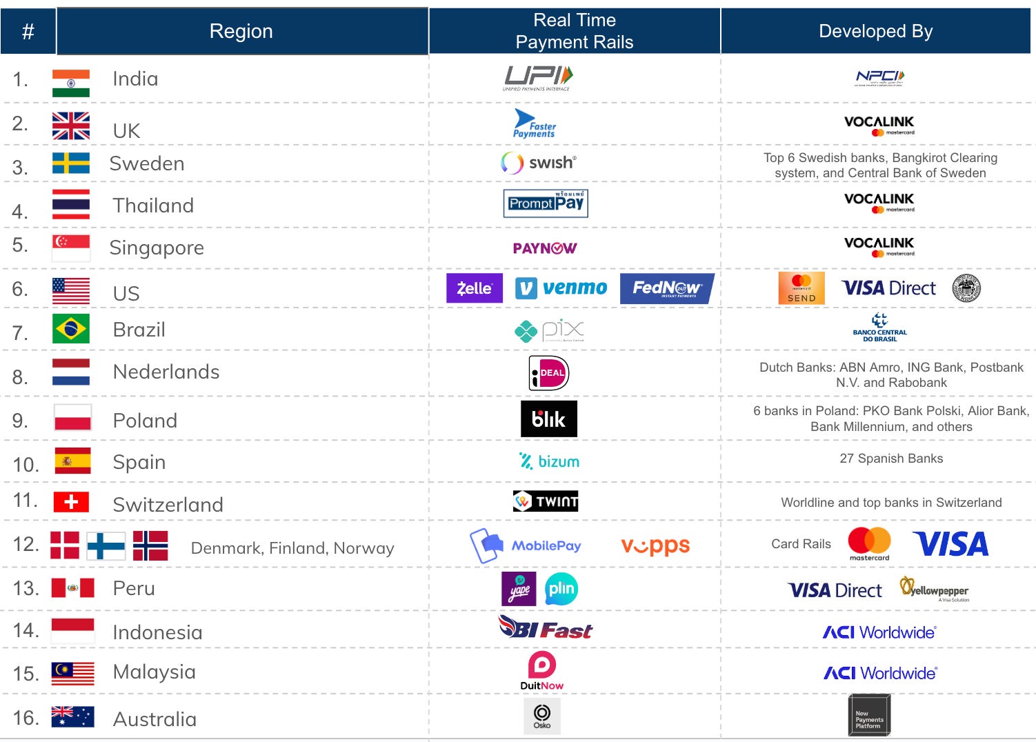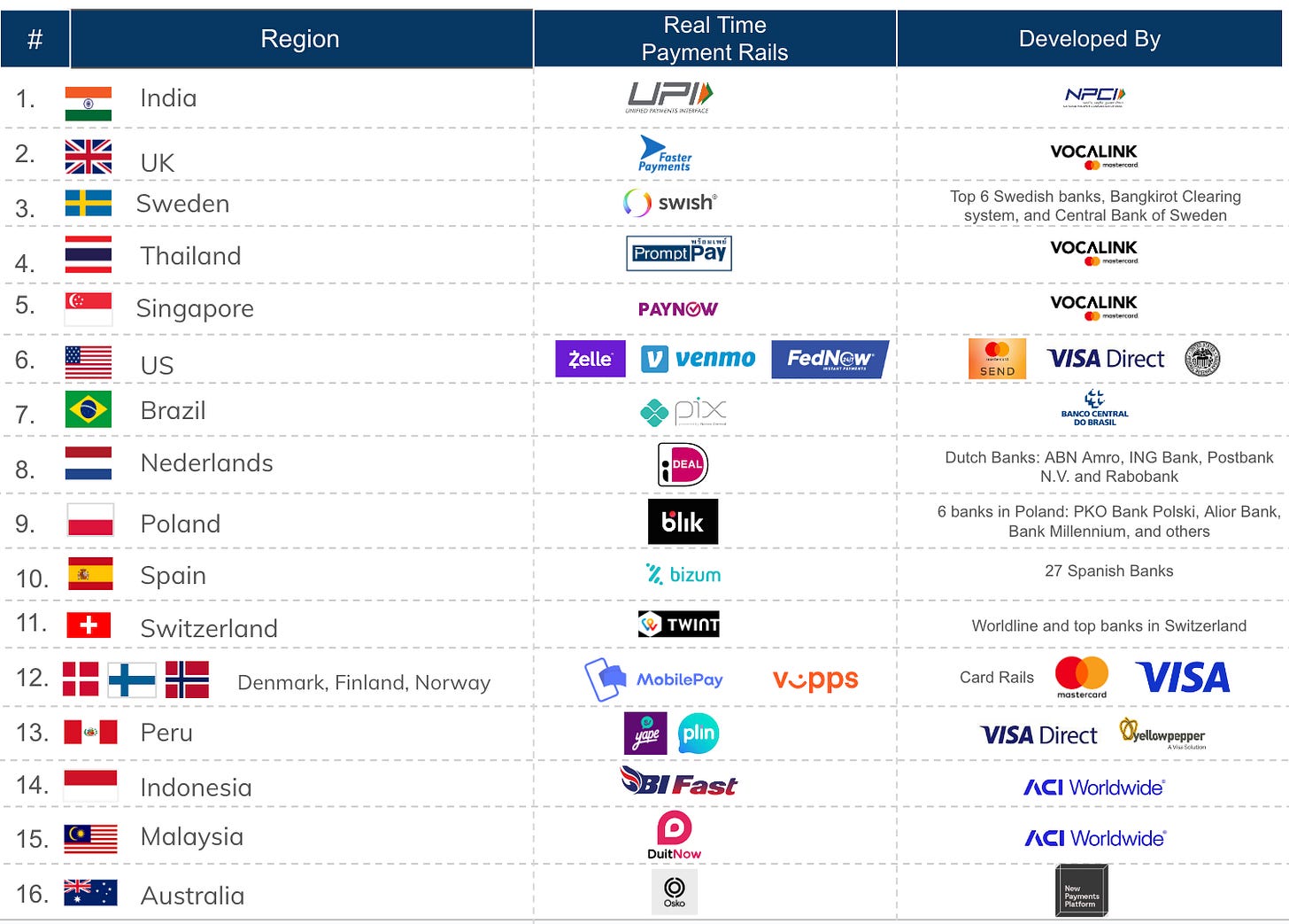 Developed countries have RTP payments, but for those countries with high penetration of banking in the population (70%+), this is more in the form of wallets that store card details, and allow 1 tap payments through NFC, or through biometrics, such as entering a PIN. Examples of this are Google Wallet, Apple Pay, and MobilePay (Vipps) in Denmark, Finland and Norway. For those countries with high cash dependence, and less penetration of banking services is where digital wallets (to store cash), and now RTP A2A payments have really taken off - countries that come to mind are India, SEA region, and LATAM.