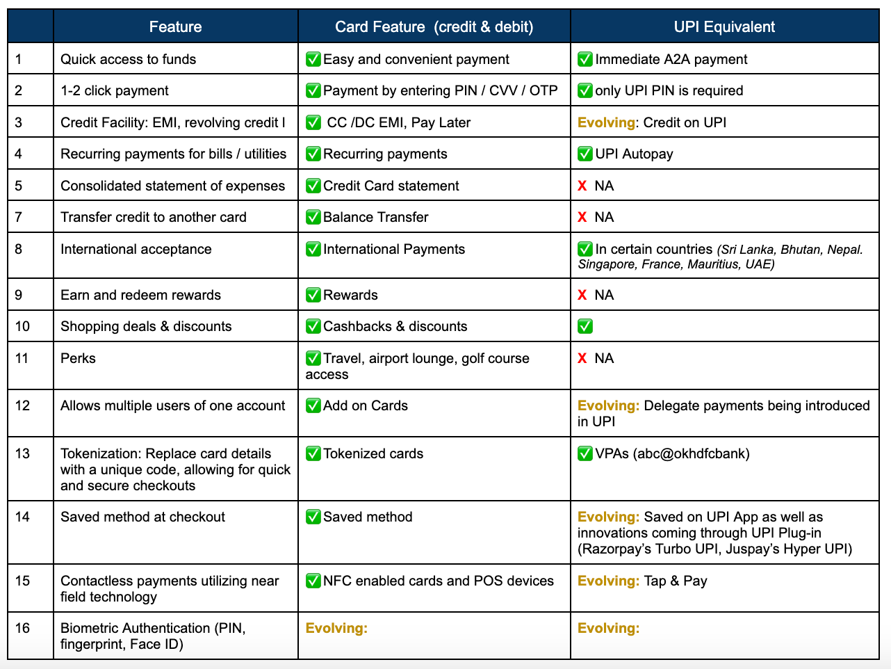 And it will require a lot of ancillary features to be able to support the scale and speed that UPI systems bring, mainly around back-end systems & servers to process these transactions. Some of these are already coming in as called out. Things such as Credit on UPI, Delegate payments (for multiple users of one account), and contactless payments will continue to evolve.